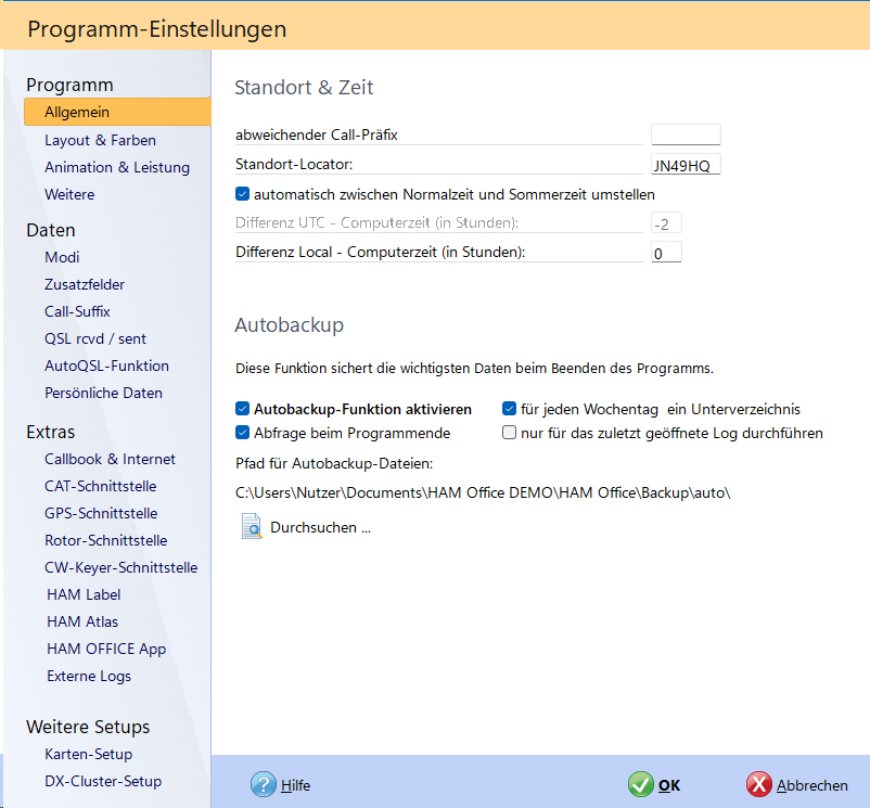 Wenn Sie nun feststellen, dass hier eine Menge Angaben abgefragt wurden, jedoch kein Maidenhead-Locator, dann haben Sie Recht. Diesen müssen Sie unter Programm "Allgemein" eingeben.