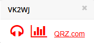 Aber damit noch nicht genug, sucht man sich eine Station aus (hier VK2WJ) und klickt auf das Rufzeichen, öffnet sich ein Fenster mit 3 Symbolen. Diese sind von links nach rechts: